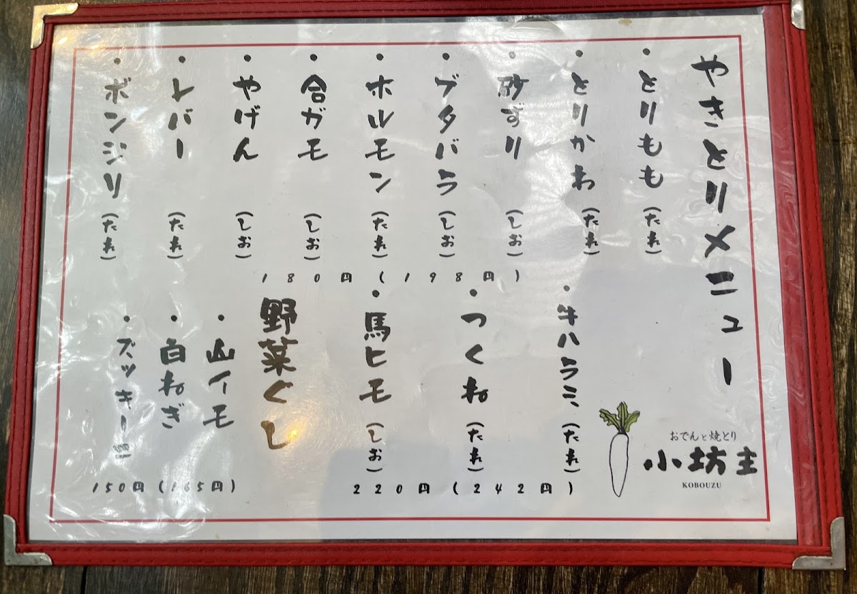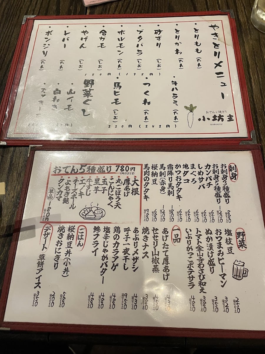 At Oden Shop Kobozu, the menu is a harmonious blend of traditional comfort and expertly grilled flavors. The highlight is undoubtedly おでん三人前 玉子は三人ね一で, a generous selection of simmered ingredients that perfectly balance warmth and umami. The 炭火串焼き showcase the skillful use of charcoal, imparting a subtle smokiness to each skewer, while the つくねたれ offers a tender, savory bite glazed in a rich sauce. Crispy and flavorful, the からあげ stands out as a must-try, pairing perfectly with lighter items like 白ねぎ, which brings a fresh, sharp contrast to the hearty offerings. For a satisfying carb option, the Yakionigiri is simple yet deeply satisfying, with a crisp exterior and soft, fragrant rice inside. Overall, the menu balances indulgence and refinement, ensuring every dish complements the next while maintaining its distinctive taste, making each visit a carefully curated culinary experience.